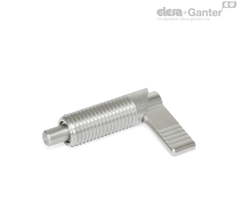 Specjalne podcięcie w korpusie trzpienia ustalającego GN 721.6 z krzywizną prowadzącą powoduje, że po odciągnięciu, szpilkę trzpienia można zablokować w pozycji odwiedzionej.