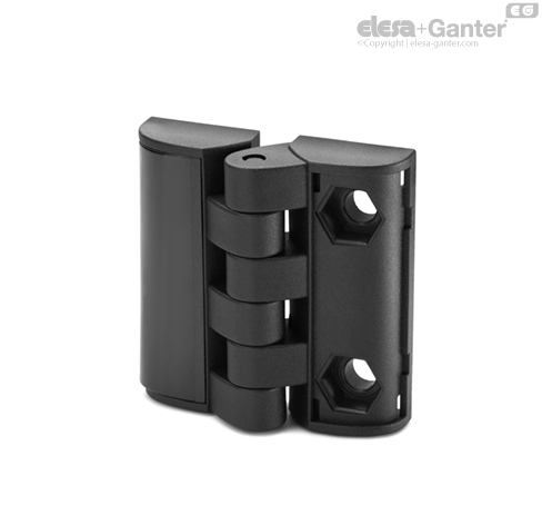 Technopolimer na bazie poliestru (PBT), kolor czarny, wykończony na połysk, mocowanie na wcisk.