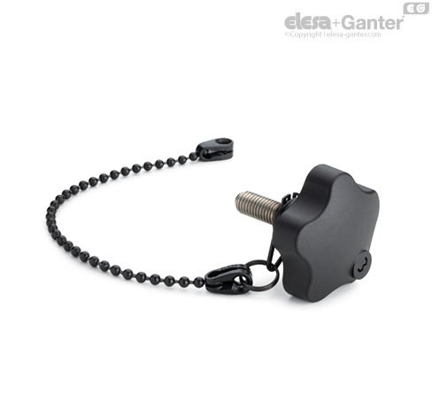 Łańcuch kulkowy i zaczepy, technopolimer na bazie żywicy acetalowej (POM), kolor czarny.
