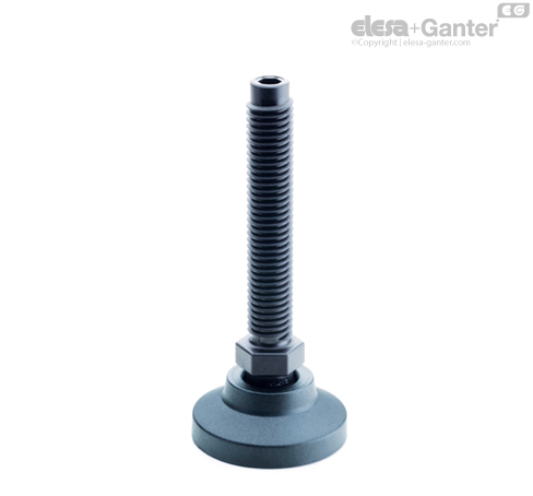 Wzmocniony włóknami szklanymi technopolimer na bazie polipropylenu (PP), rekomendowany do kontaktu z kwasami i zasadami, kolor szary RAL 7024, z gniazdem imbusowym i sześciokątną nakrętką regulacyjną.