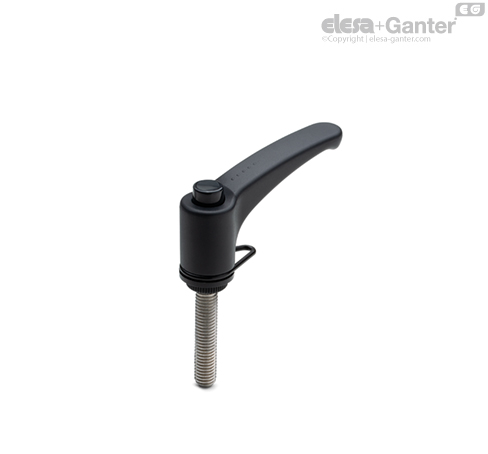 Element zaciskowy wykonany z wzmocnionego włóknami szklanymi technopolimeru, kolor czarny, z radełkowaną wystającą częścią ułatwiającą wstępne dokręcanie. Sprężyna powrotna ze stali nierdzewnej AISI 302.