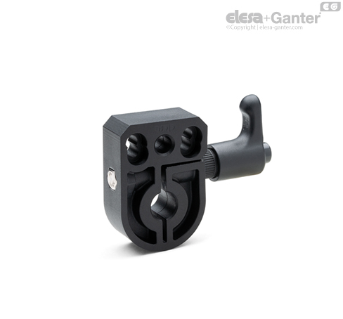 Rękojeść nastawna ERW. wzmocniony włóknami szklanymi technopolimer na bazie poliamidu (PA), kolor szaro-czarny, wykończony na mat, z wtopką ze stali nierdzewnej AISI 304, otwór gwintowany nieprzelotowy.